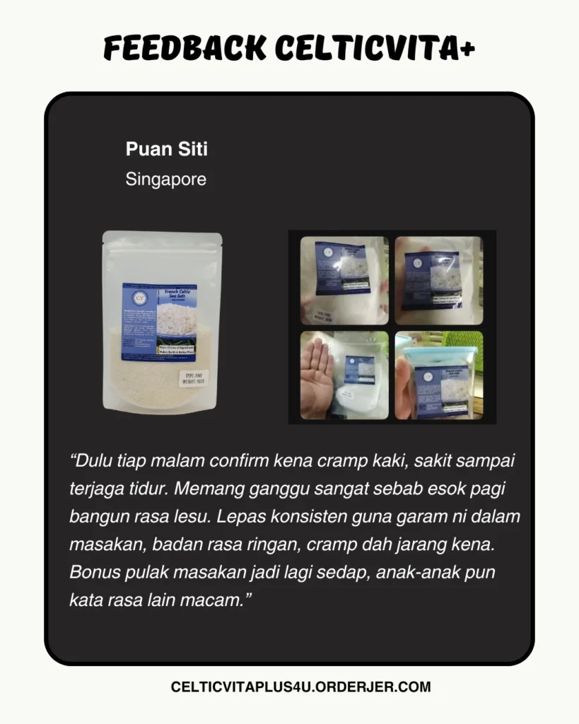 ✔️ CelticVita+ wajib ada di setiap rumah! Garam premium dari Perancis – kaya mineral penting, rasa lebih enak, sesuai untuk masakan harian, baking, seasoning malah boleh digunakan untuk rendaman badan & detoks.